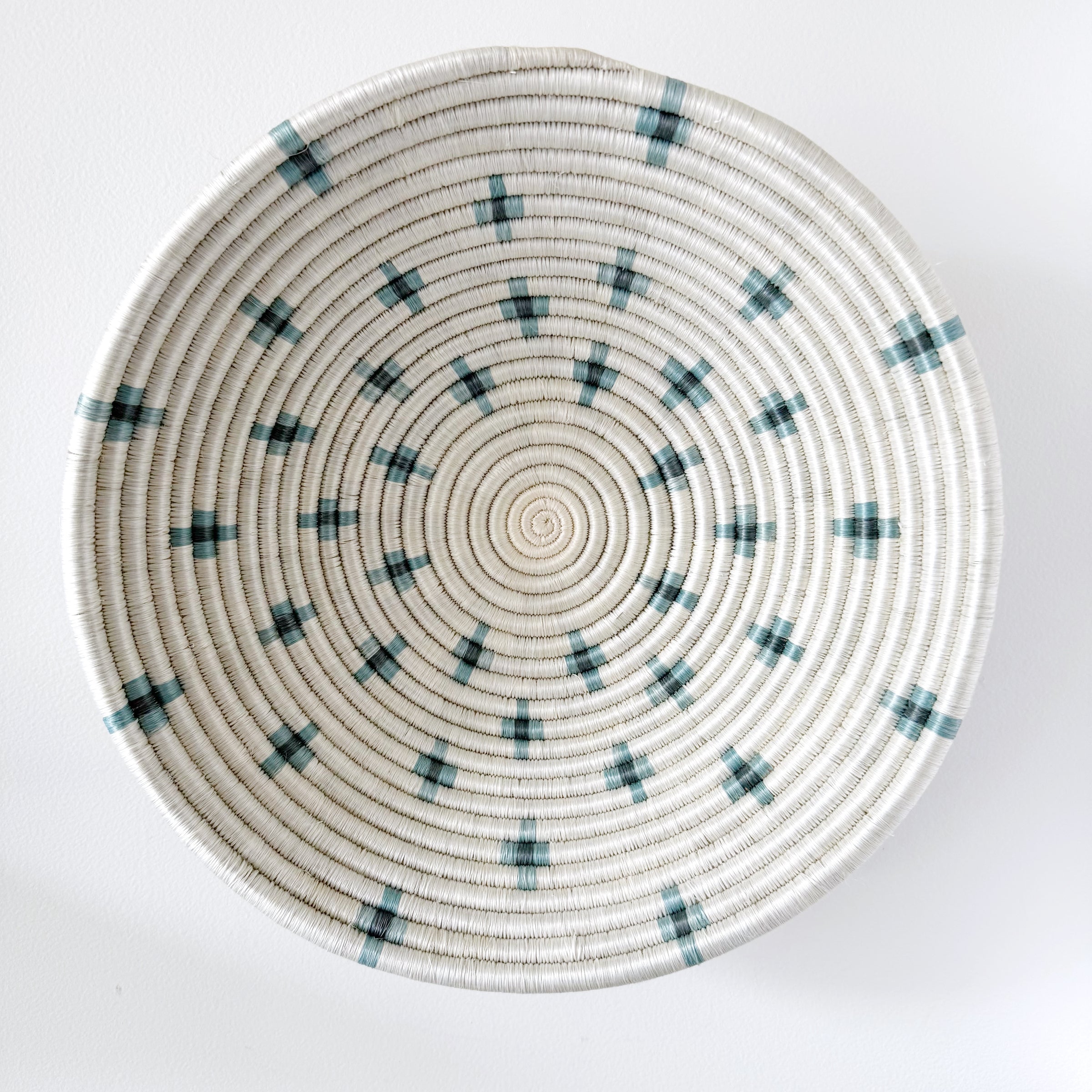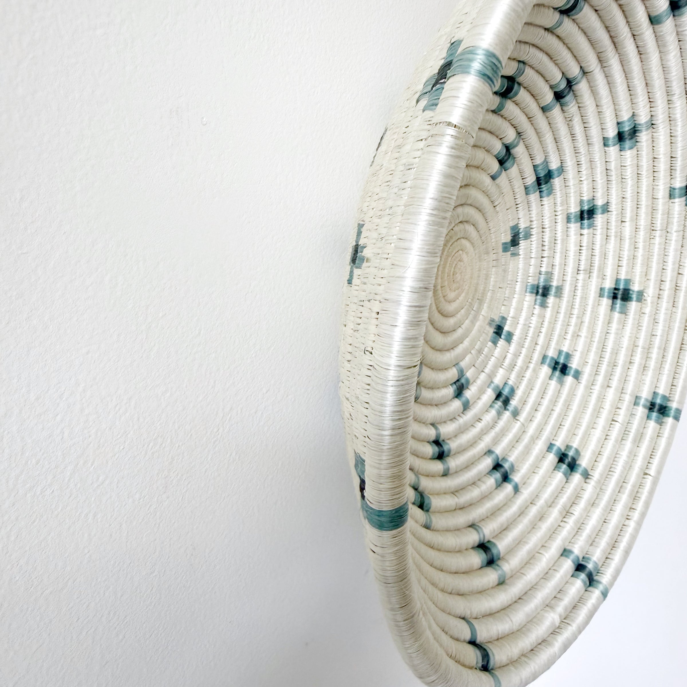 Hand crafted by skilled artisans in Rwanda who have learnt their art from older generations. Local materials are used to create each basket and every one has a unique design and a loop stitched onto the back for easy hanging.