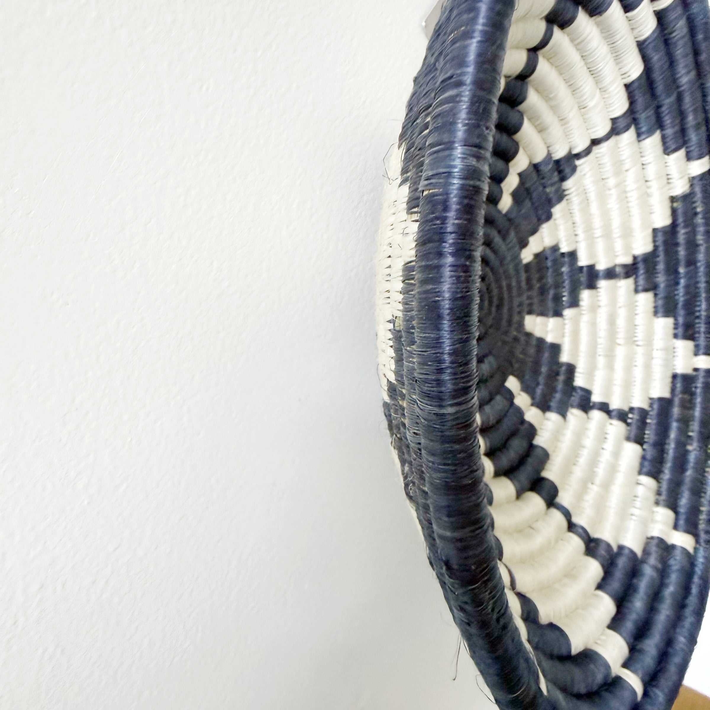 Hand crafted by skilled artisans in Rwanda who have learnt their art from older generations. Local materials are used to create each basket and every one has a unique design and a loop stitched onto the back for easy hanging.